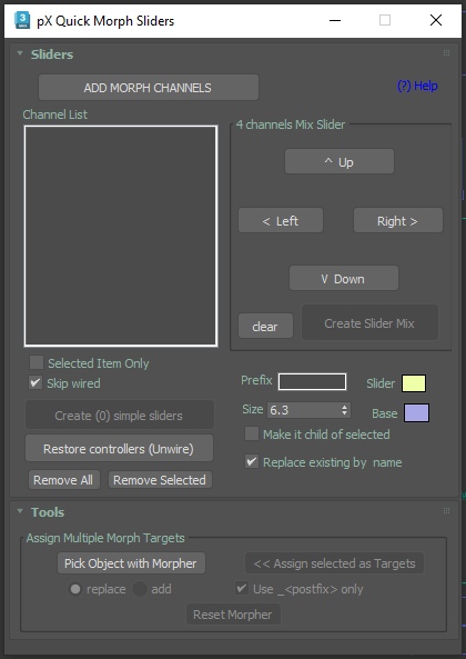 pX ToolsnamedMorphSliders. - Open the Quick Morph Sliders floater.